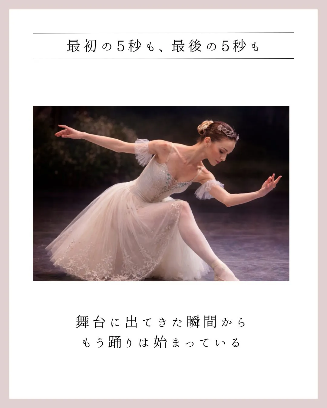 「ピルエットを10回回って、ビタッと止まった。でもそのあと、うつむいてそそくさと引っ込んだら──どう見える?」
